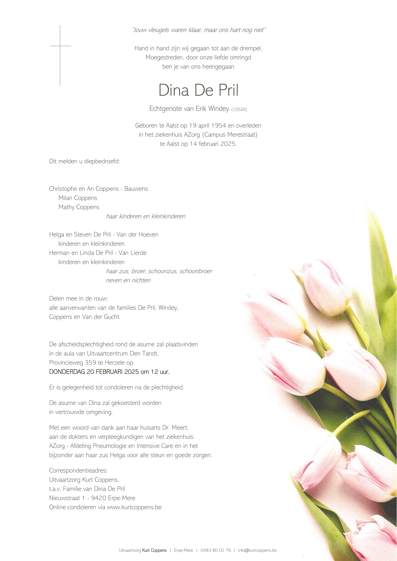 Overleden te Aalst (9300) op vrijdag 14 februari 2025 op 70-jarige leeftijd