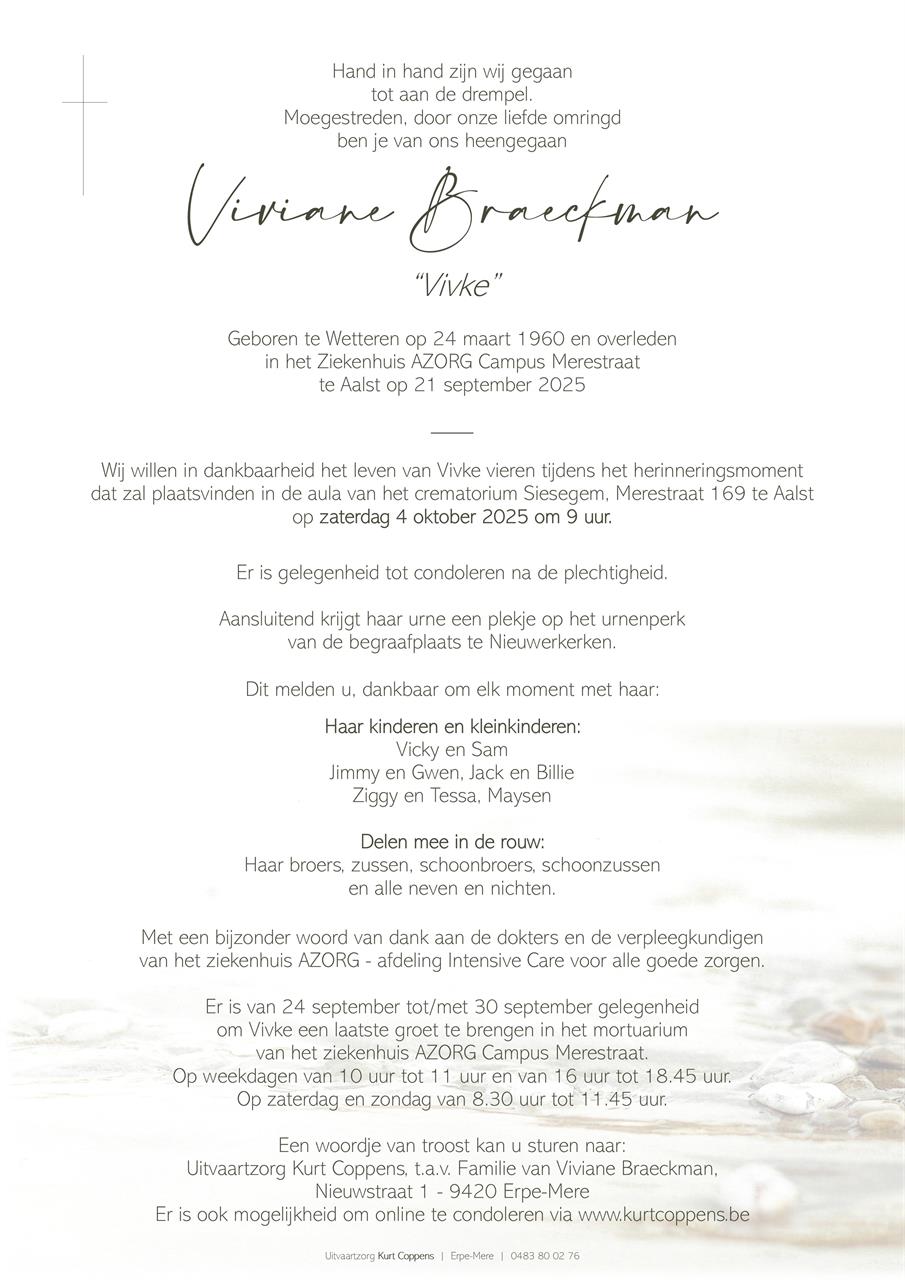 Overleden te Aalst (9300) op zondag 21 september 2025 op 65-jarige leeftijd