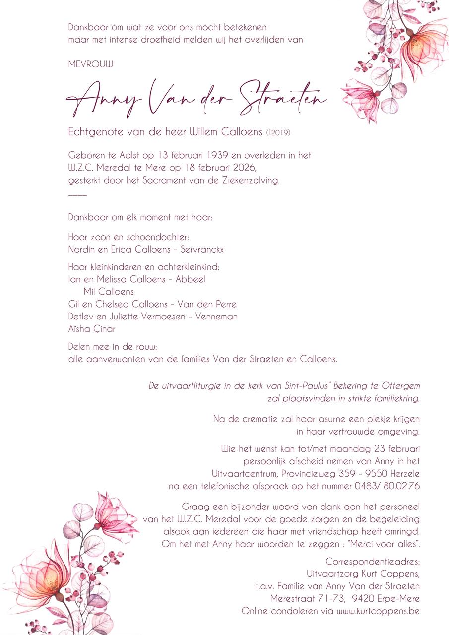 Overleden te Mere (9420) op woensdag 18 februari 2026 op 87-jarige leeftijd