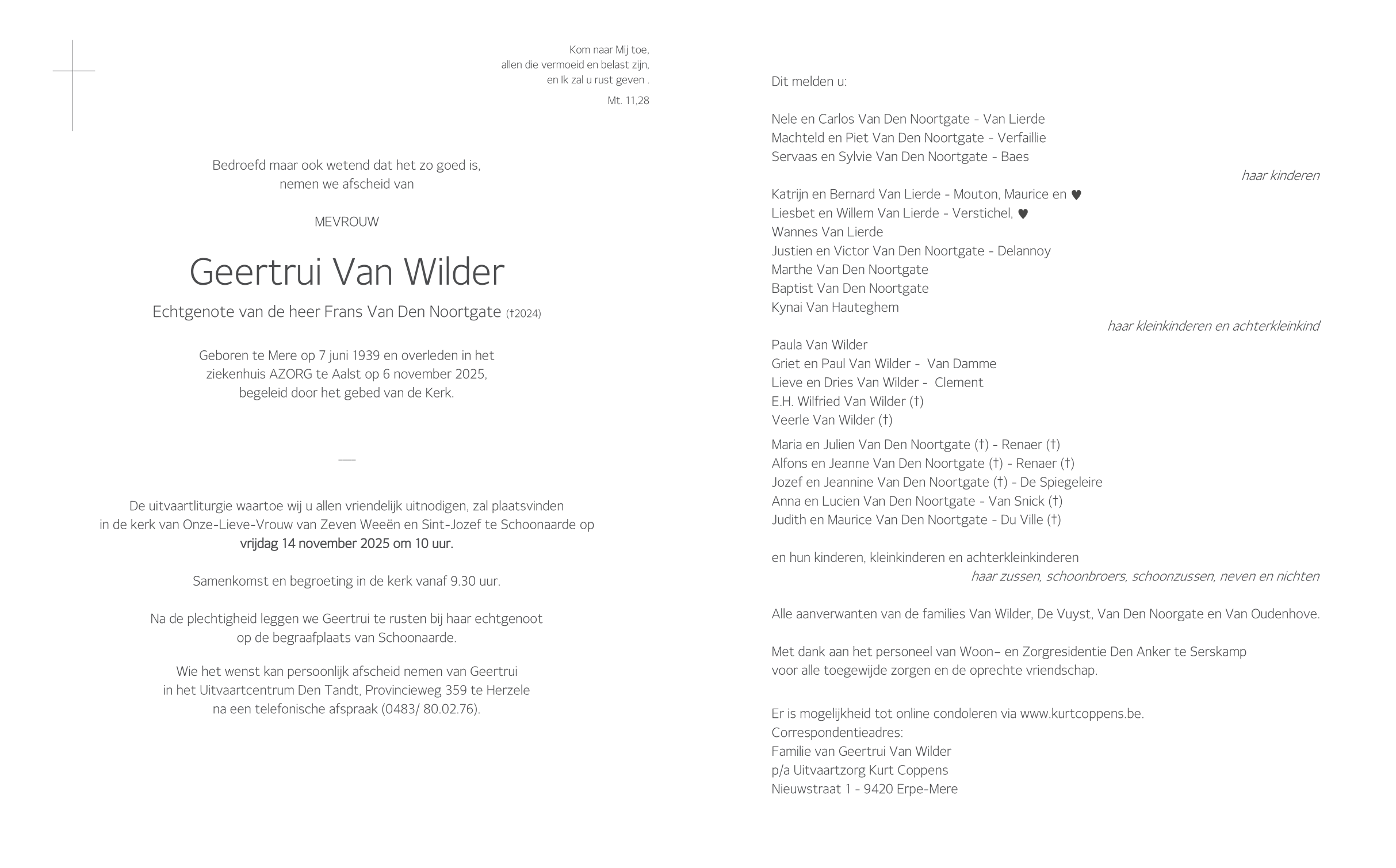 Overleden te Aalst (9300) op donderdag 6 november 2025 op 86-jarige leeftijd