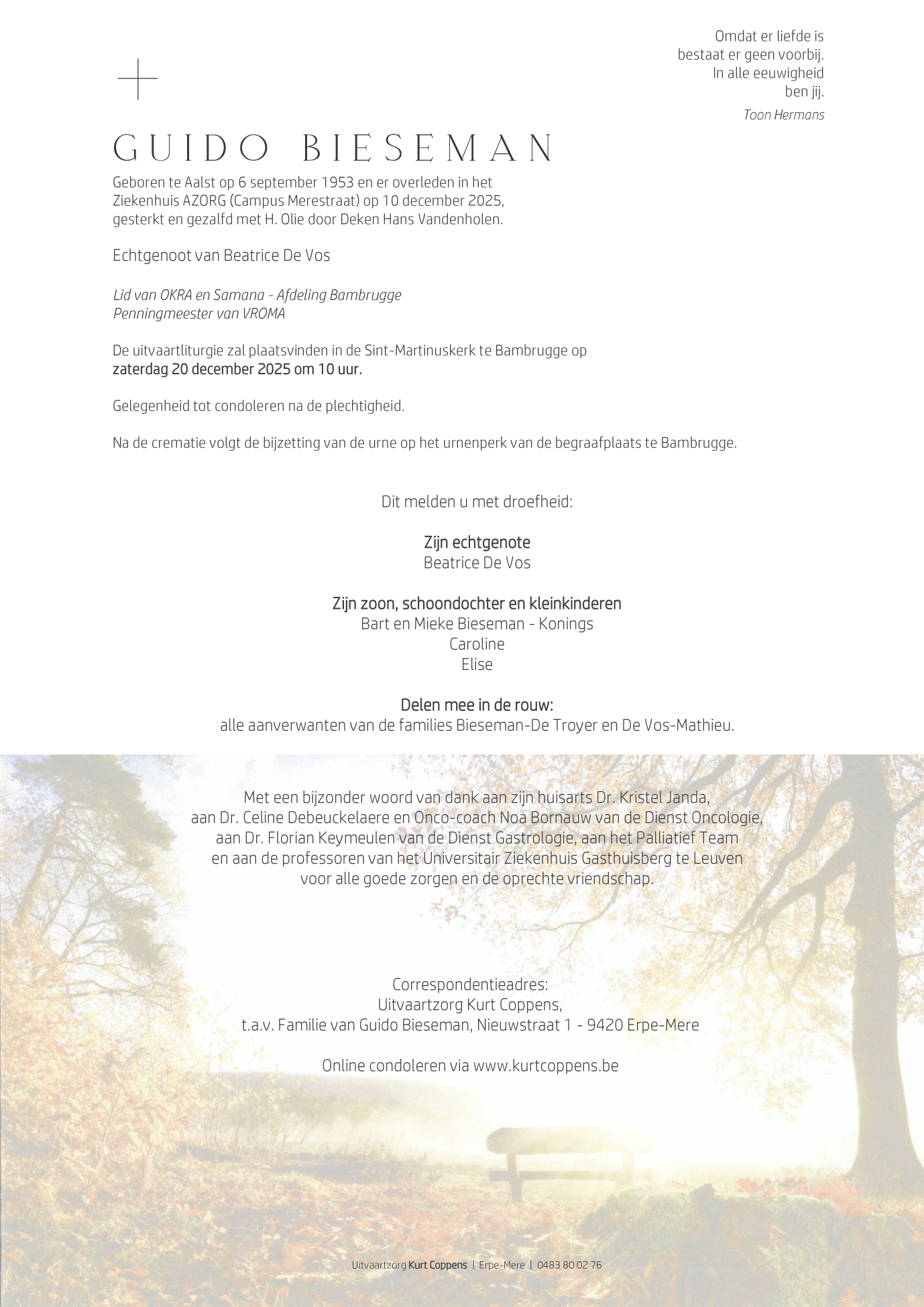 Overleden te Aalst (9300) op woensdag 10 december 2025 op 72-jarige leeftijd