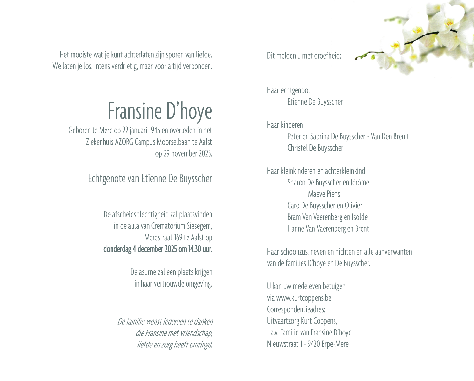 Overleden te Aalst (9300) op zaterdag 29 november 2025 op 80-jarige leeftijd