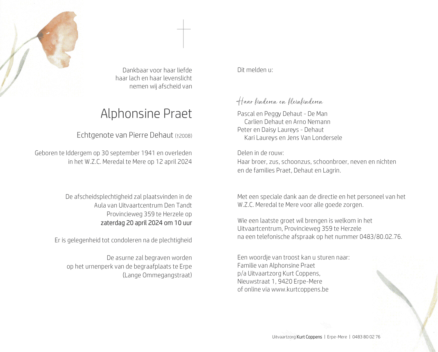 Overleden te Mere (9420) op vrijdag 12 april 2024 op 82-jarige leeftijd